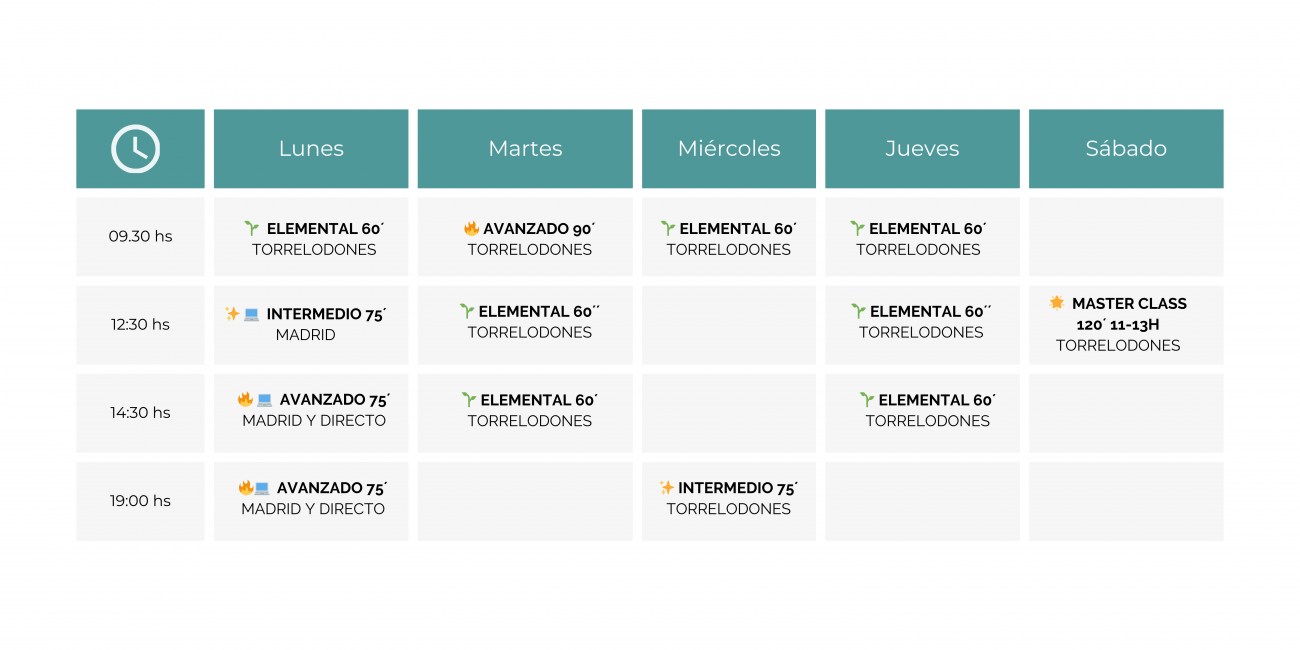 ⏰ Duración: 60 minutos intermedio, 90 minutos nivel avanzado.